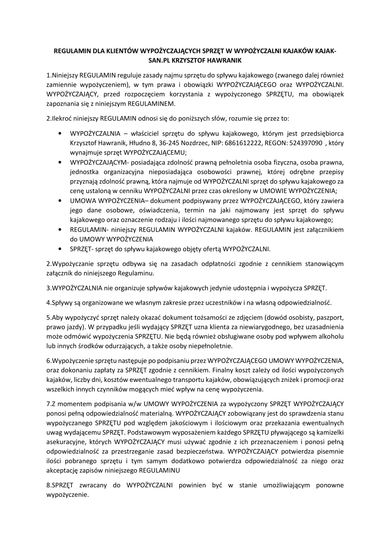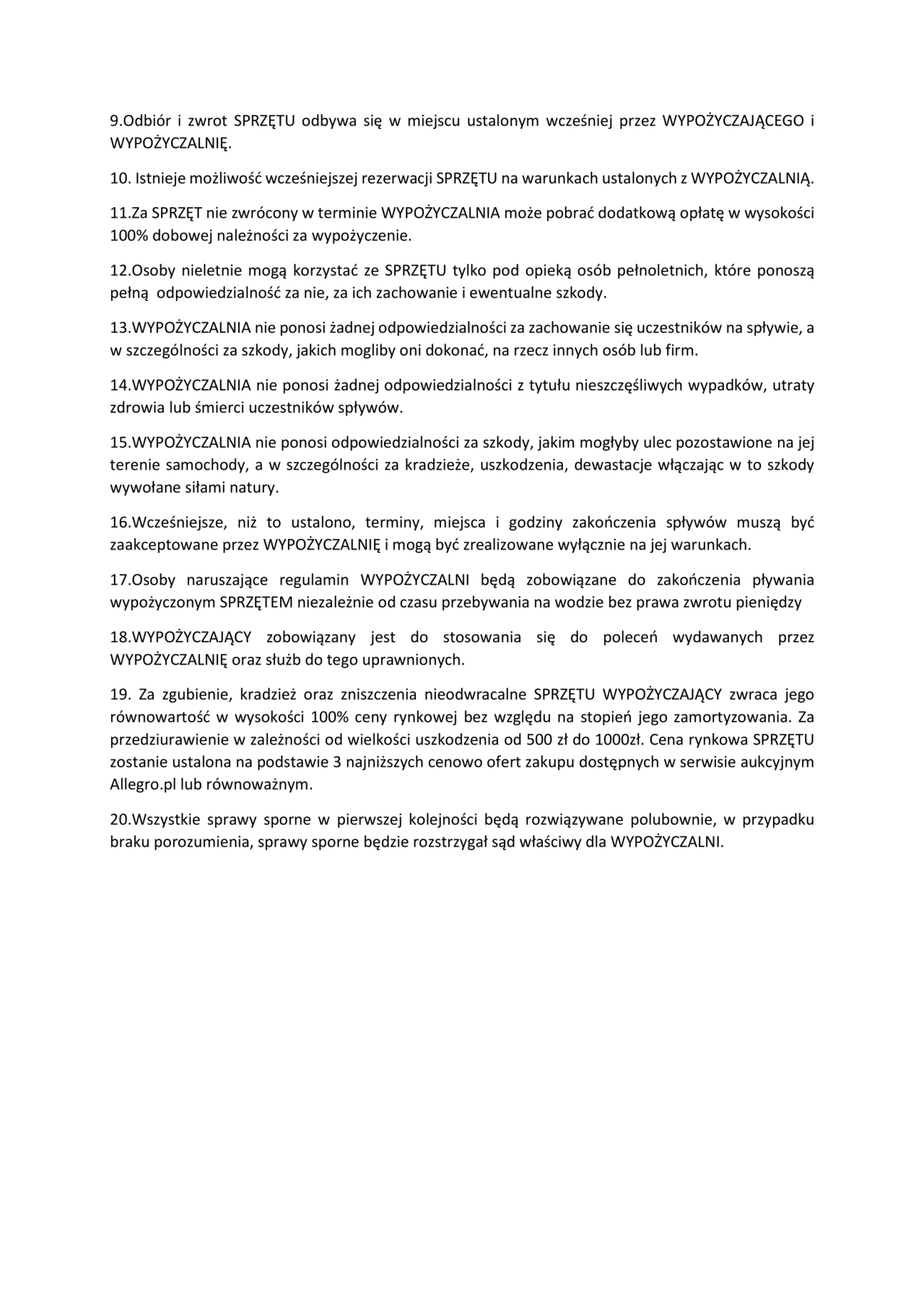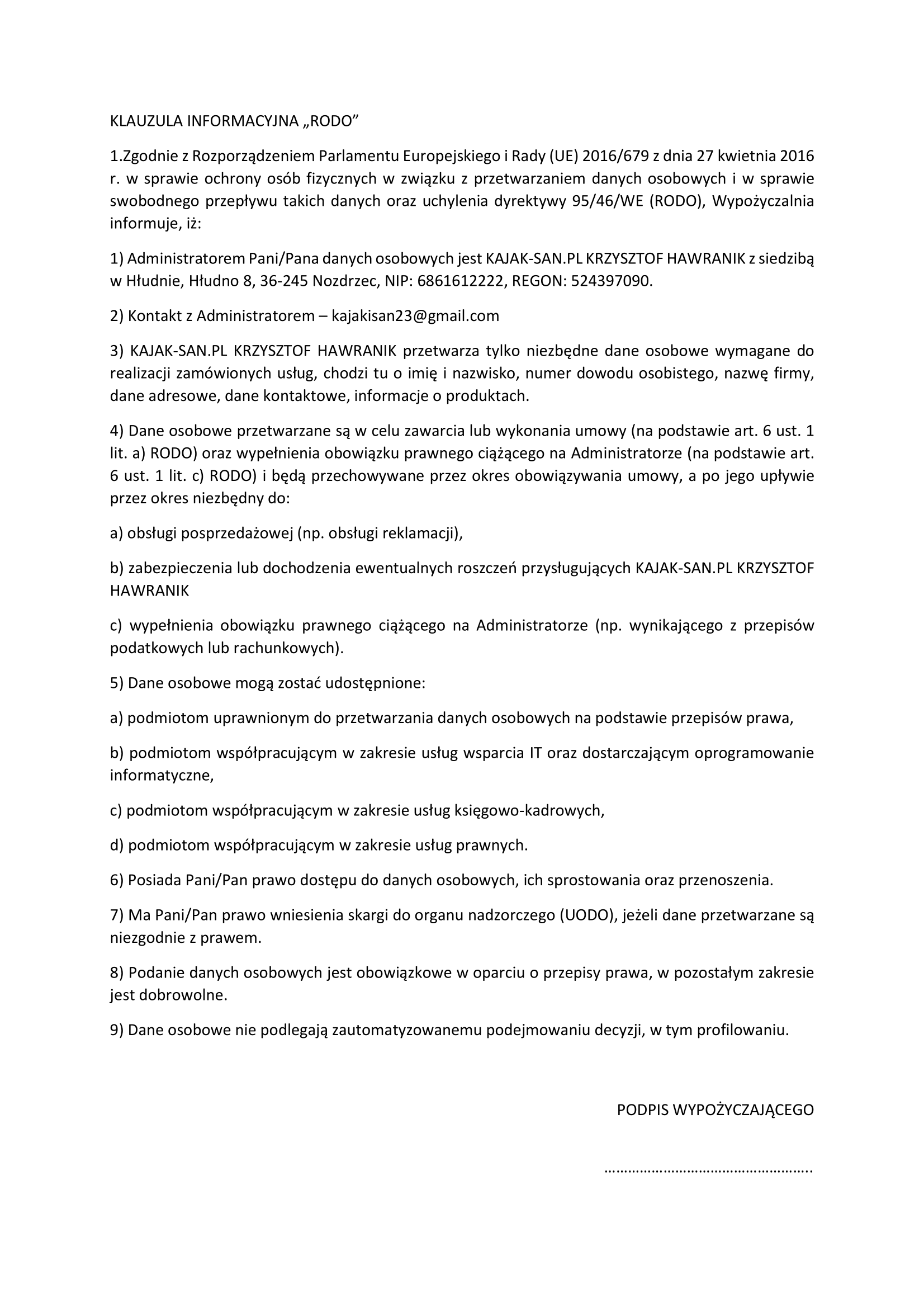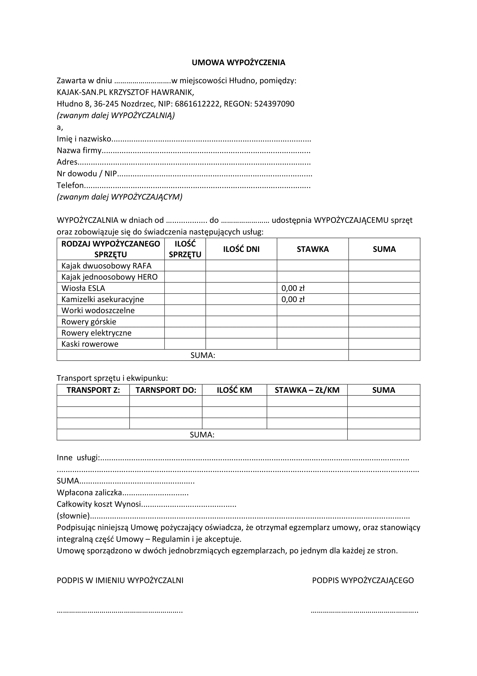 Poniżej znajdują się niezbędne dokumenty z którymi należy się zapoznać przed wypożyczeniem.